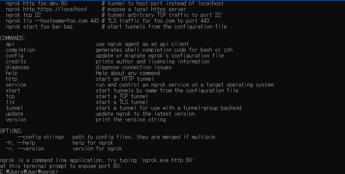 ngrok 실행파일에서 명령어를 입력해볼게요.