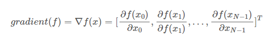 미분 가능한 N개의 다변수 함수 f를 각 축이 가리키는 방향마다 편미분한 것이다.